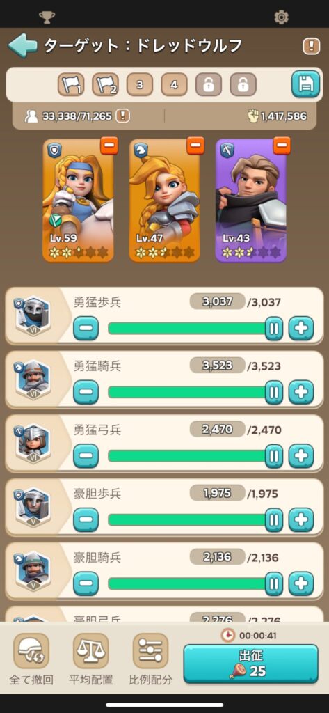 「参加済み兵士数/参加可能な兵士数の上限」となっている。